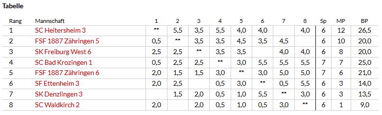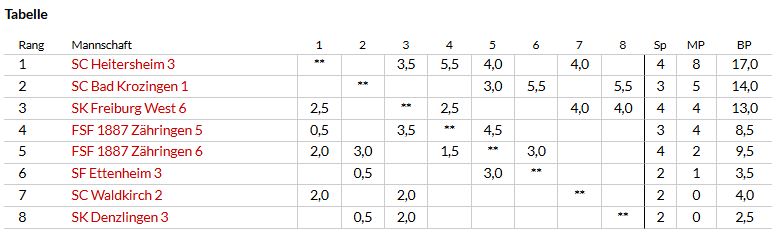In der Verbandsrunde spielt unser Team 6 in der Kreisklasse und im wesentlichen mit unseren jugendlichen Nachwuchsspielern. Teamleiter ist Viktor Swoboda.
