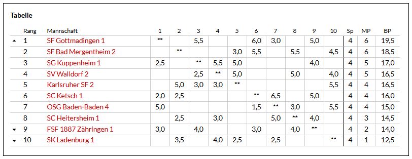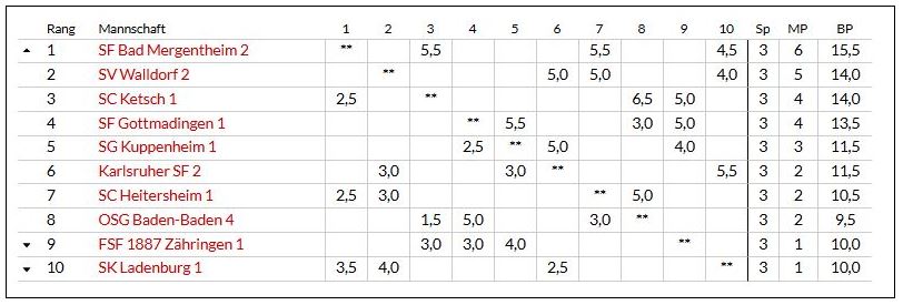 Verbandsliga Süd Baden Tabelle aus BSV Ergebnisdienst